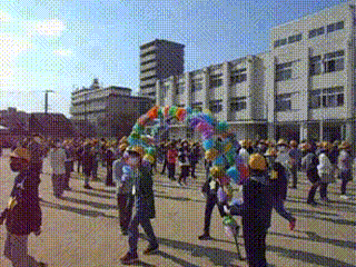 6年生が1〜5年生のつくった花道を通って入場してきました!