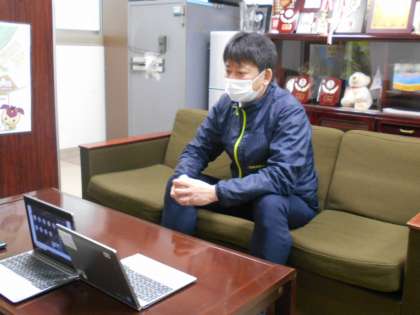 今朝の児童朝会は、校長室から放送しました。