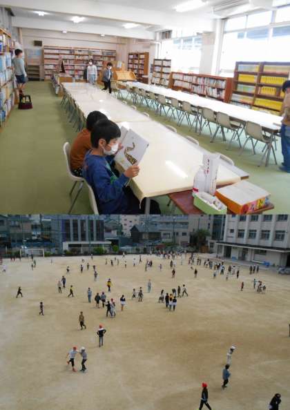 今日は晴れていたので多くの児童が運動場で遊んでいて、図書室の様子は少し寂しかったです!