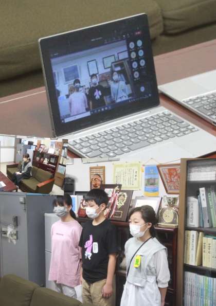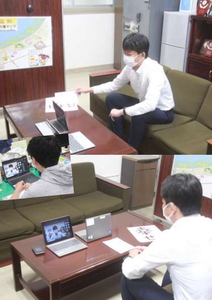 今朝の『児童朝会』は、校長室から『Teams』を使って放送しました。