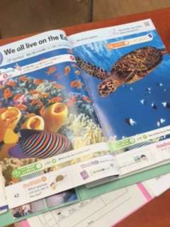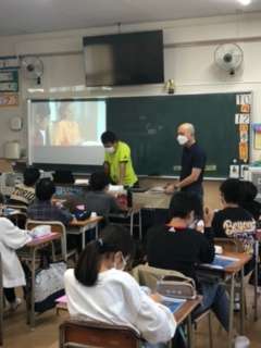 海の生き物の様子を、英語で聴きとったり、説明したりしています。