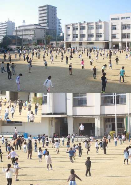子どもたちは音楽に合わせて、『グー・チョキ・パーとび』など楽しく運動していました‼