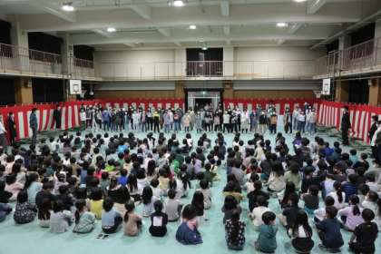 はじめにみんなで声を合わせ、校歌を歌いました。