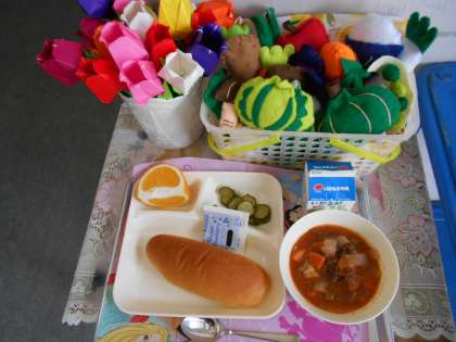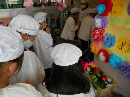 給食室の飾りが、≪春のうきうきとした気分≫を盛りあげてくれています!