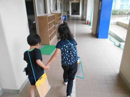 今日は、1年生だけでの『校内たんけん』です。