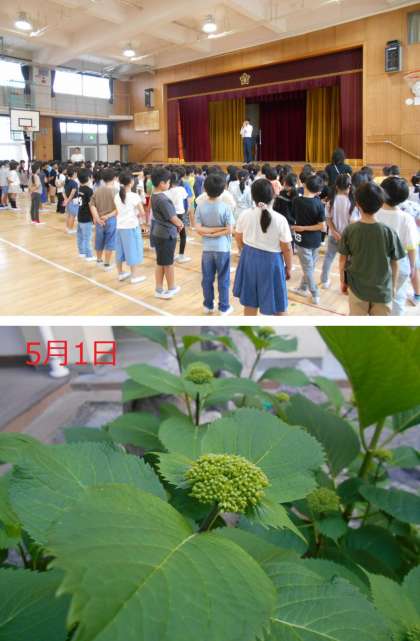昨日の児童朝会で校長先生より『アジサイ』の話がありました!
