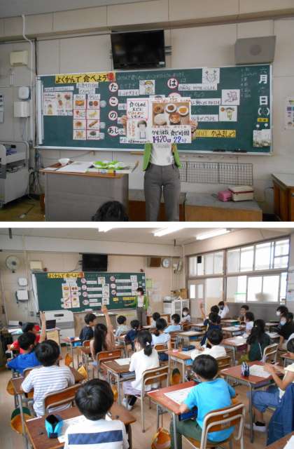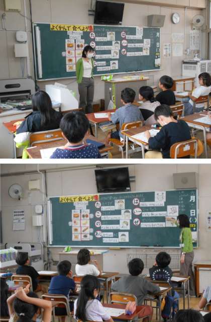 今日の3年生の栄養指導は、『よくかんで食べよう!』の学習でした。