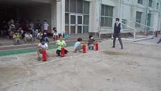 3年生は講堂前で、『水消火器』の操作体験をしました!