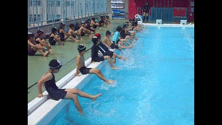 先生の話をよく聞いて、プールに入るときの約束をしっかりと守っていました!