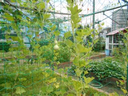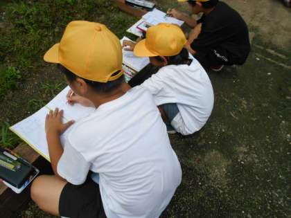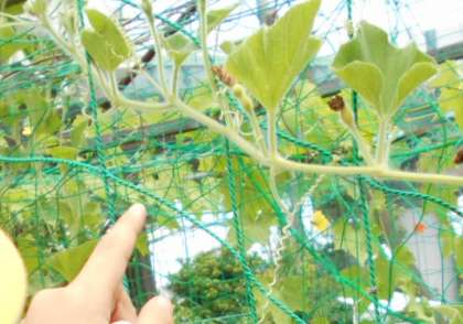 4年生がビオトープで『ヒョウタン』の観察をしていました。