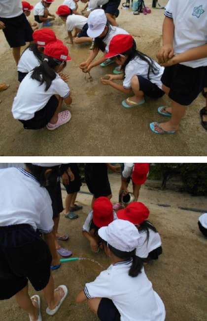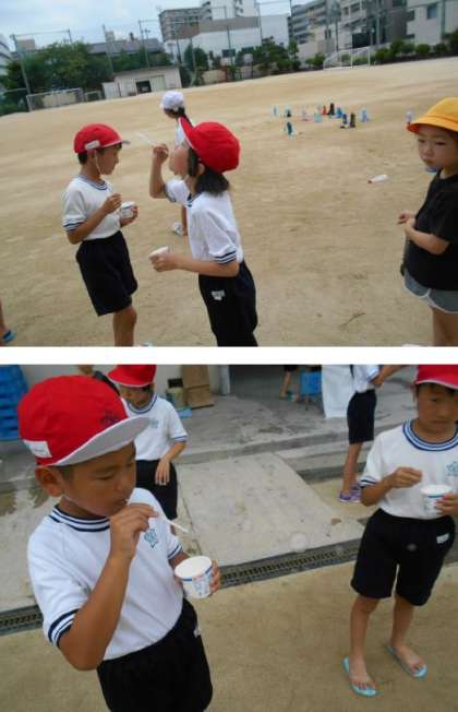 1年生が『どろあそび』や『シャボン玉とばし』など、夏の遊びを満喫していました‼