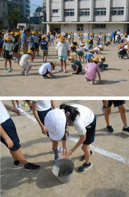 けがをすることなどがないよう、みんな熱心に石を拾っていました!