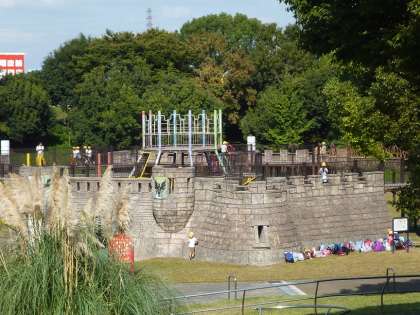 このあと、ちょっと移動して「とりで広場」へ。大きなお城風の遊具に、滑り台。貸切状態で、思いっきり遊ぶことができました。