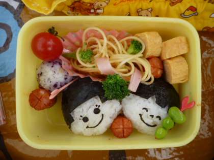 そこでたっぷり遊んだあとは、その近くの芝生広場でお弁当。おいしそうなのが勢ぞろい!おやつも交換したりで楽しく過ごせました。