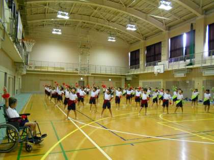 『はじめの言葉』でスタートし、本校の1年生は、運動会で踊ったダンス『みんなに サチアレ』を披露しました!
