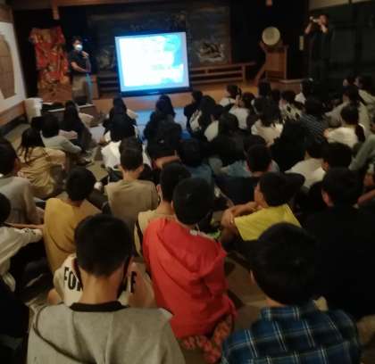 鳥羽水族館の飼育員の方から説明をしていただいています。