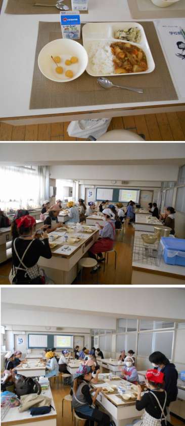 参加された方々は、子どもたちのように『給食当番』も体験しました。