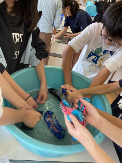 洗い→しぼり→すすぎ→干しと、手洗いの一通りの流れを体験し、『汚れが落ちてきれいになった!』と実感していました‼