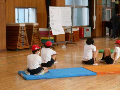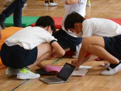 6年生が<タブレット>を使ってマット運動の学習をしていました!