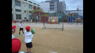 2年生が体育の授業で『的あてゲーム』をしていました。