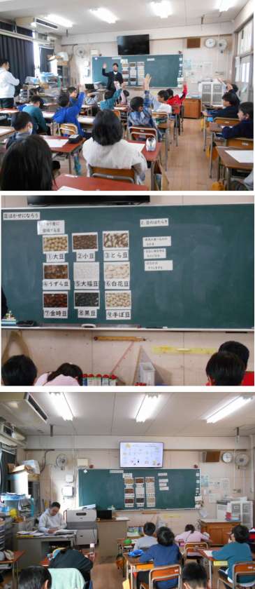 大豆は、『とうふ』や『みそ』、『おから』などいろいろな食べ物に変身することを知り、とても驚いていました!