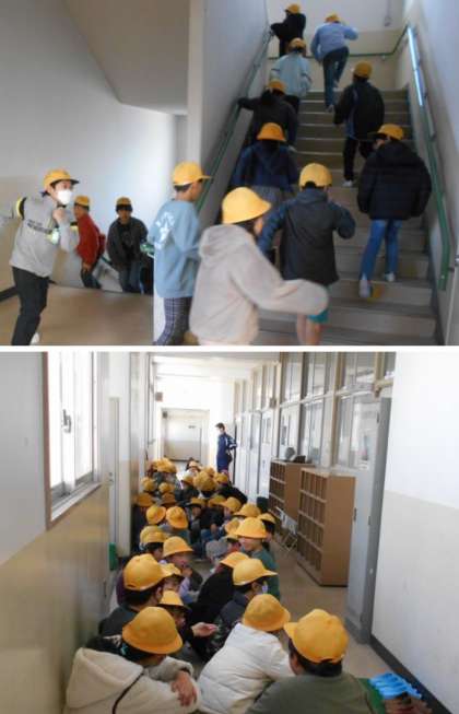 続いて『津波警報』が発令された想定で、3階以上に退避する訓練もしました。