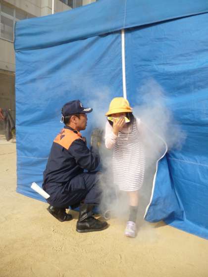 旭消防署の皆さんにお越しいただき、煙が出た時の逃げ方や