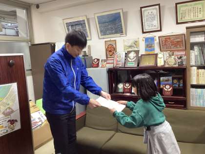 初めに、『大阪府テコンドー選手権大会』で1位になった児童が、『表彰状』と立派な『メダル』を受け取っていました!