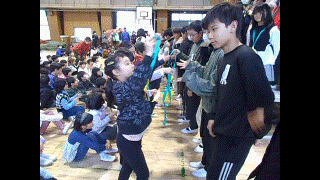 今日の1時間目に講堂で、『卒業生を祝う会』が行われました。
