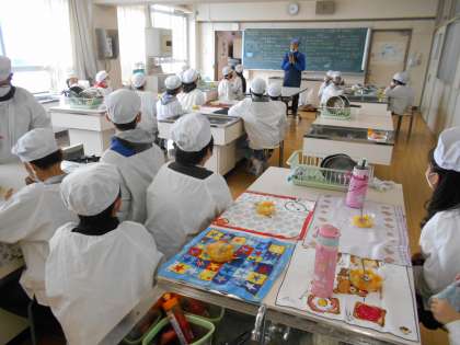 5年生の調理実習『フルーツ白玉』の様子です。