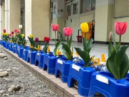 1年生が育てていたチューリップが少しずつ花を咲かせています。