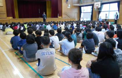今朝の児童朝会で『いじめについて考える日』について校長先生からお話がありました。