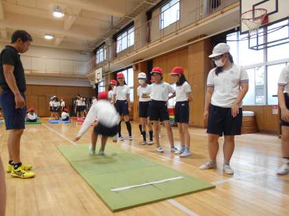 今日は、講堂で行われる新体力テストの種目『立幅跳び』・『長座体前屈』・『上体起こし』などを計測しました!