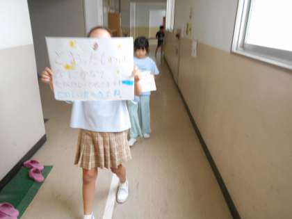 『お店の宣伝』のために校内を回っている子どもたちもいます!