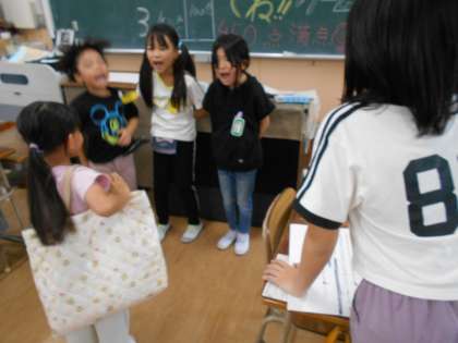 『言葉あてゲーム』では、ある言葉を1文字ずついっせいに叫んでいるので、当てるのは至難の業!
