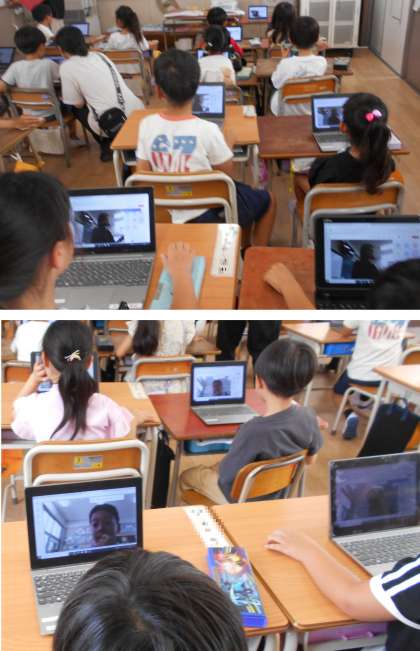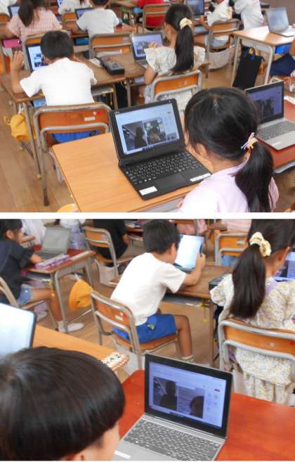 1年生の教室で『双方向オンライン学習デー』の練習をしていました。