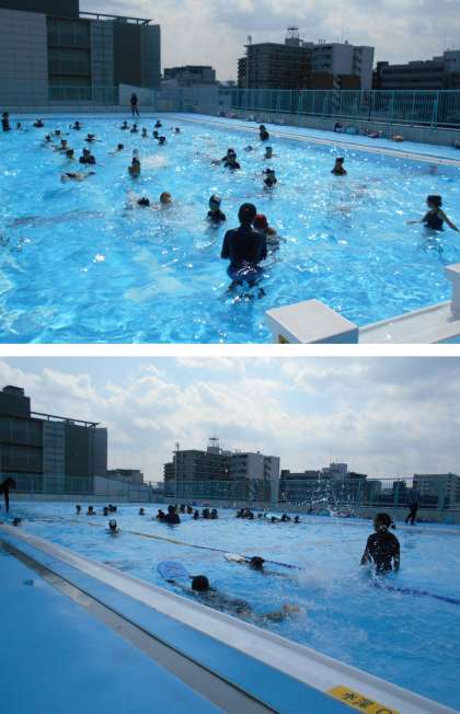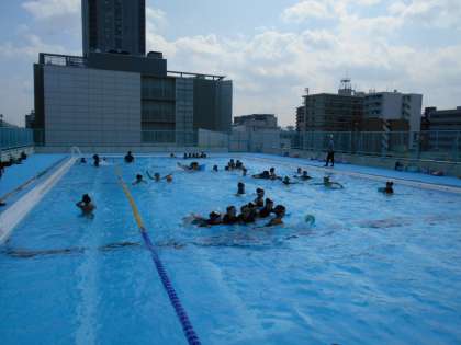 屋上プールでは、子どもたちの元気な声が響いています!