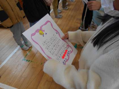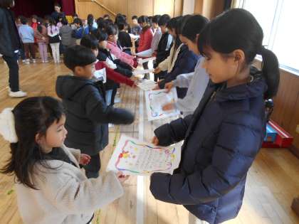 終業式後、『おもちゃ遊び』や『紙芝居』などでお世話になった2年生へ、1年生から感謝状が渡されました!
