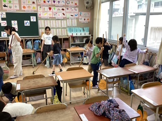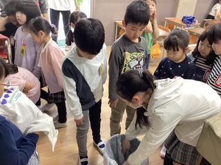 1年生が初めてそうじに取り組みました。6年生に教えてもらいながら一生懸命に取り組みました。
