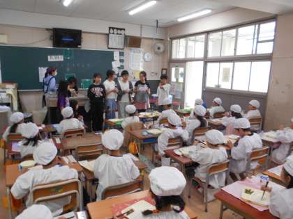 飲み終わった牛乳パックのたたみ方や片付け方も教わり、1年生はきちんと片付けを行うことができました。