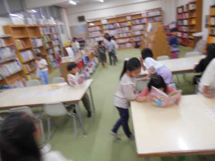 本日6月3日(火)の15分休みには、図書室が多くの低学年児童でにぎわいました。