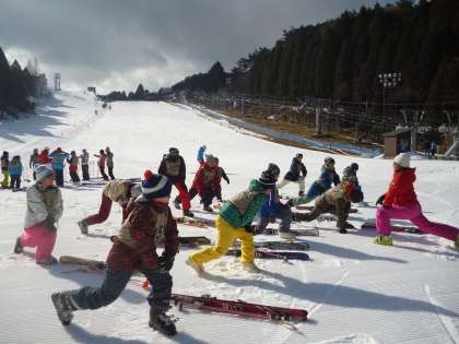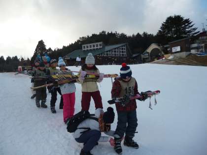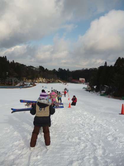卒業スキー遠足 2.スキーをもってゲレンデへ