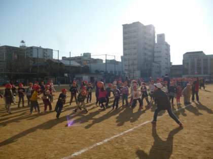 今日は全学年が6年生と対戦をするスポーツ交流会です。