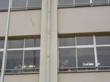 ほかの学年の子たちがうらやましそうに窓から覗いたりしています。