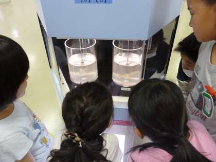 本日、4年生は庭窪浄水場へ社会見学に行きました。私たちが使っている水が、きれいになっていく過程について詳しく教えていただきました。水に薬品を入れてごみやにごりを固めて沈める仕組みを間近で見せてもらいました。とても勉強になりました。