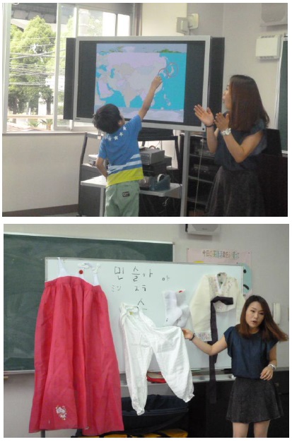 ミン先生は、韓国の服を持ってきて、実際に見せ、説明してくださいました。