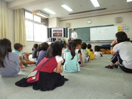 レミー先生は、フランスの小学校について、クイズを出しながら楽しく教えてくださいました。