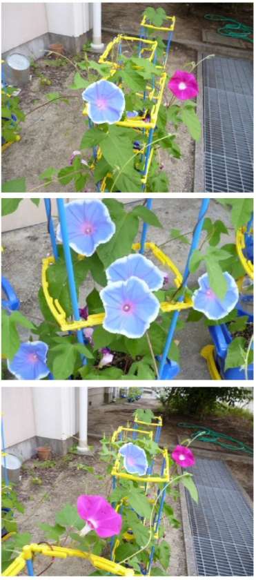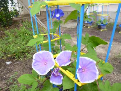 1年生が育てているアサガオが大輪の花を咲かせています。