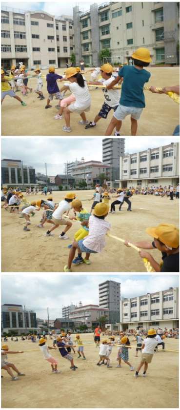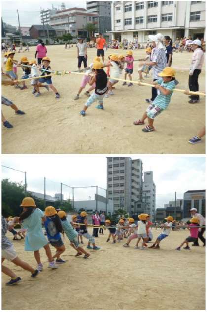 にこにこ班のメンバーで力を合わせ、班対抗“十字つなひき”大会をしました。