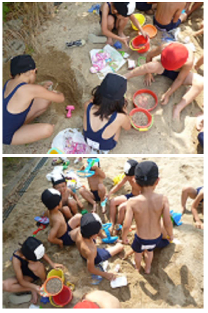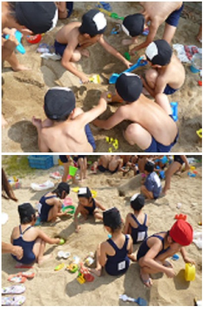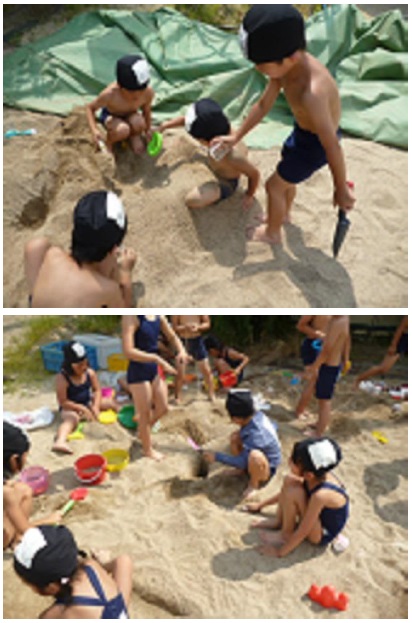 友だちと一緒になって、お山をつくったり、トンネルをほったりして仲良く遊びました。